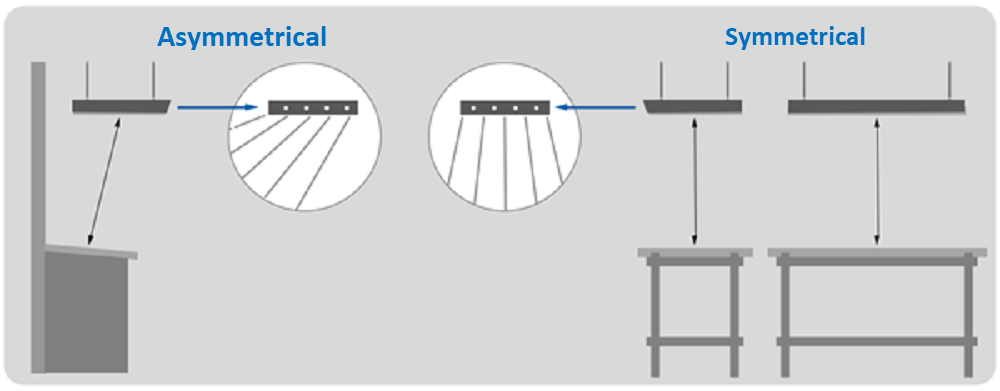 Available with symmetrical or asymmetrical reflector design.